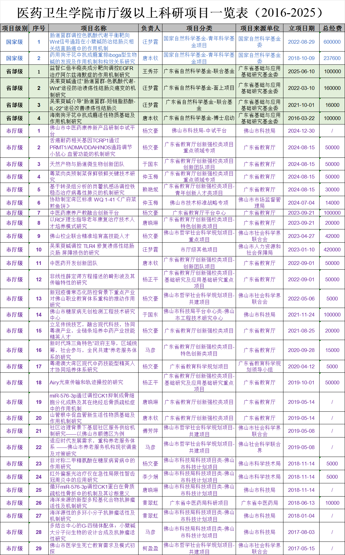 太阳成tyc234cc市厅级以上科研项目一览表(2016-2025)