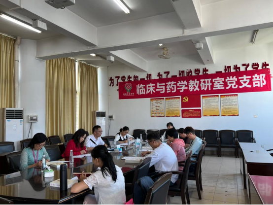 杨文豪介绍了临床与药学教研室党支部的建设情况和成效,介绍了入党的条件与发展党员的基本程序。党员教师代表分享了自己的入党经历,讲述了自己成为中国共产党员后在思想上和行动上的变化。非党员教师们就自己对党的认识、入党动机、入党程序等内容进行了交流发言。
