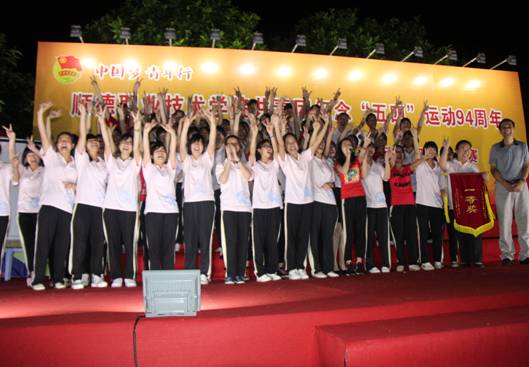 五月的天空,细雨绵绵;五月的大地,处处颂歌。为纪念“五四”运动94周年,表达对祖国深深的祝福,医学系于5月23日晚在桃苑广场举行了以“青春之歌”为主题的大型团支部歌咏比赛。校督导室和医学系相关负责人、校团委和医学系老师到场指导,校团委、各兄弟院系学生干部及我系全体学生参与此次活动。
