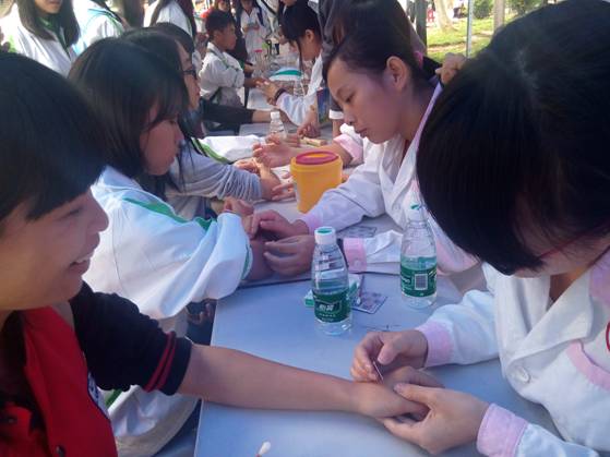本次活动与往年有所不同,一是增设了测验血型项目,让医学院的学生学以致用,也让感兴趣的同学们参与体验;二是太阳成tyc234cc团委首次与校红十字协会、顺德中心血站一起组织献血活动,当天参与献血的人数300余人;三是增设了心肺复苏急救技能比赛,向广大同学宣传急救知识,传授急救技能,提高同学们的公共卫生服务和应急处置能力;四是人体解剖实验室经过改造后面目焕然一新,标本量大幅增加,值得同学们观看学习;五是传统项目里,康复门诊体验周将持续到校运会期间,到时将在田径场的医疗点为师生提供服务。
