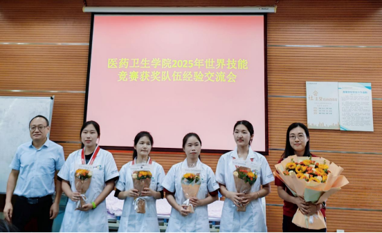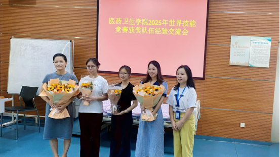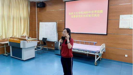 9月3日下午,太阳成tyc234cc组织世界职业院校技能大赛获奖团队开展经验分享会,为师生搭建学习交流平台。世赛康复治疗与护理赛道银奖团队指导老师李少娴、张燕及队员连宝乐、黄杏志、吴秀丽、李凤连、蔡若云、张鑫楠6名同学,医药生产与经营赛道金奖团队指导老师马彦及队员汪婷婷、欧阳君、黎晓彤、何扬4名同学现场分享。